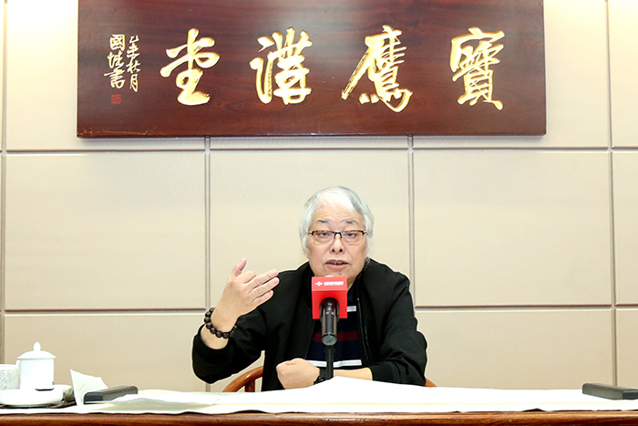 講堂中,周國城通過解讀大量作品,分析了王羲之、王鐸、張大千、吳昌碩、齊白石、八大山人、任伯年等名家在中國畫領域的特點和成績,并從他們的作品中解讀中國精神。他認為中國畫中的詩書畫印四元素是相輔相成、珠聯璧合的關系,是千百年來文化發展的結晶,是各種文化要素的高度凝練,是世界文化的瑰寶。相比西洋畫的寫實,中國畫的寫意更側重于哲學層面的意義,中國繪畫是一種難度、一種高度、一種精神,值得所有國人繼承和發揚。