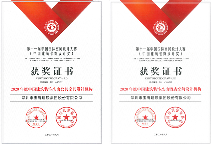 日前,第十一屆中國國際空間設計大賽在深圳落下帷幕,通過組委會專家的層層嚴格篩選與評審,寶鷹集團憑借強大的設計綜合實力獲評“2020年度中國建筑裝飾杰出公共空間設計機構”和“2020年度中國建筑裝飾杰出酒店空間設計機構”,寶鷹設計研究院設計作品獲二金二銀二銅。
