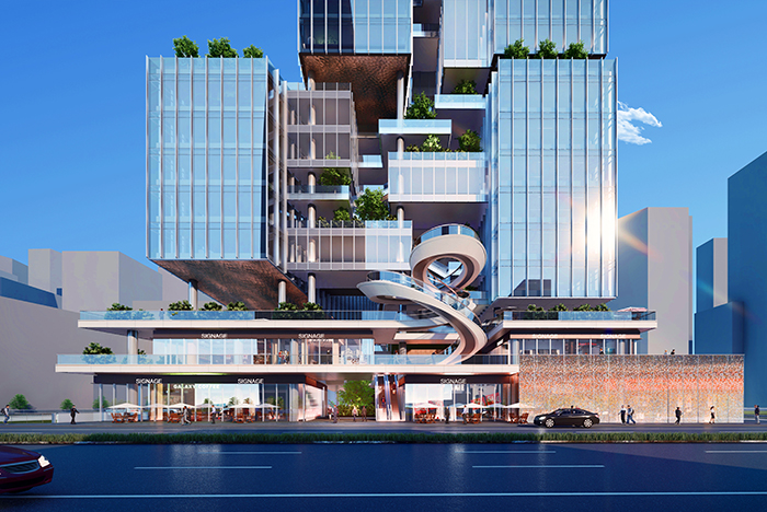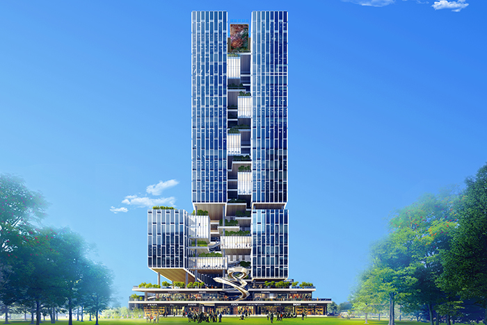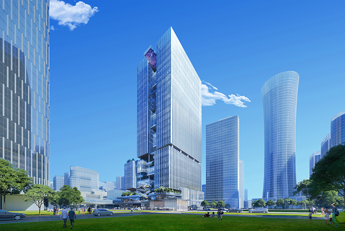 深圳建工·寶鷹總部大樓由Aedas凱達環球建筑設計事務所設計,在這個總部林立的地塊,以“綠谷之門”為概念,打造一座兼備綠色親人空間與社交互動的地標性辦公社區。項目建設完成后,將成為深圳建工與寶鷹股份的戰略據點,不僅有利于改善公司整體運營環境,滿足現代化、信息化、數字化運營管理的需要,同時有助于進一步提升公司綜合管理能力和整體形象,更好地吸引高端人才加入,增強公司的市場競爭實力和持續盈利能力。從而為兩家單位扎根深圳灣總部基地,實現穩健可持續發展,服務南山城市建設提供有力保障。