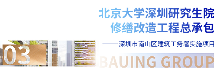 ◆北京大學深圳研究生院是北京大學與深圳市人民政府共同創辦的全日制研究生教育為主的高等教育機構,是北京大學扎根深圳的研究型國際化校區,是北京大學創建世界一流大學戰略的重要組成部分。北京大學深圳研究生院修繕改造工程總承包由深圳市南山區建筑工務署組織建設,華潤代建,寶鷹建設集團具體實施,合同額8611萬元。