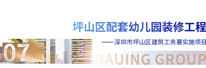◆為進一步優化幼兒園配套,滿足當地學前教育資源需求,寶鷹建設集團配合深圳市坪山區建筑工務署完成沙湖碧桂園配套幼兒園裝修工程、富潤樂庭配套幼兒園裝修工程、竹坑保障房配套幼兒園裝修工程、湯坑第一工業區配套幼兒園裝修工程,范圍包含:教學樓、辦公樓的裝修改造、景觀工程、廚房工程等,合同額1788萬元