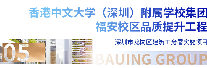 ◆香港中文大學(深圳)附屬學校(集團)是深圳市龍崗區與香港中文大學(深圳)在基礎教育領域開展深度合作的重要項目,是龍崗區建設粵港澳國際教育示范區的重要舉措,也是龍崗區今后重點打造的基礎教育卓越品牌。香港中文大學(深圳)附屬學校(集團)是深圳龍崗區教育局直屬的九年一貫制公辦學校,由香港中文大學(深圳)運營管理。寶鷹建設集團負責香港中文大學(深圳)附屬學校集團福安校區品質提升工程,合同額1998萬元。