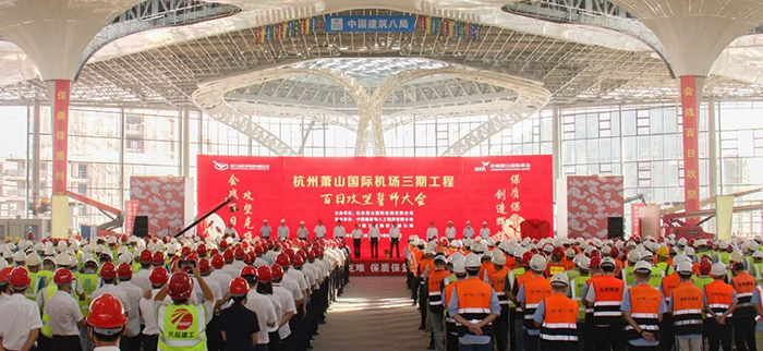 寶鷹集團承建的杭州蕭山國際機場三期項目T4航站樓及陸側交通中心工程旅客航站樓及北一指廊工程精裝五標段,功能涉及國內混流、國際到達、國內出發和國際出發。